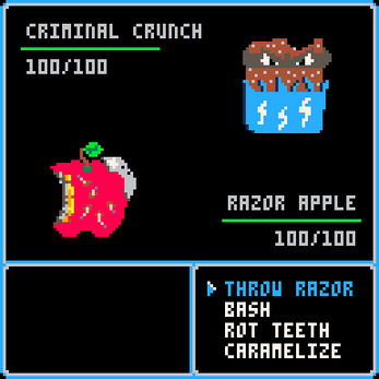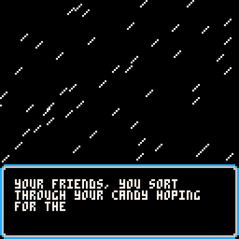It's Halloween and you've just gone trick-or-treating. When you get home, you and your friends dump your stashes on the floor. Who got the best loot? Who got the most candy? Who cares... before you know it, your candies have come to life, with a thirst for blood and sugar!